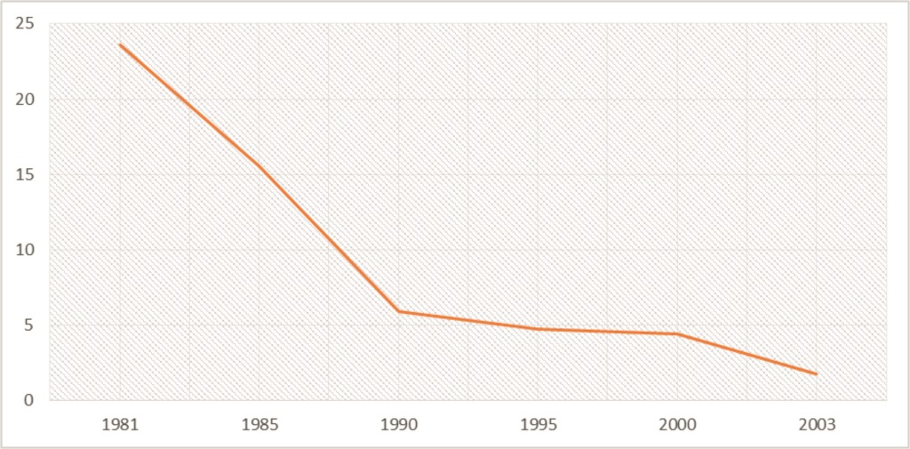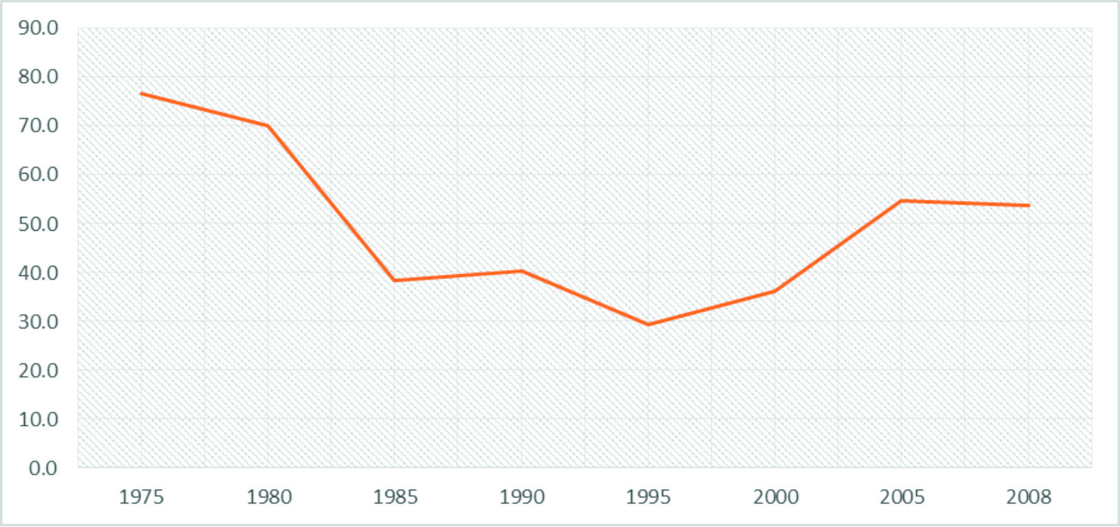 Also, the country is one of the most unequal societies in the world, with a Gini coefficient of 48.8%. Share of the national income derived from taxes on income of the highest ten per cent earners (a very small proportion of the population) have increased over the years (it is currently around 40% of the national income). While those from the majority (over 50%) of the population who are in the lowest 20% income bracket, constitute less than five per cent of national income (this has been declining over the years; see Fig. 2 below). This shows that the income of the top ten per cent have been increasing whilst that of the lowest 20% have stagnated or decreased over the same periods.